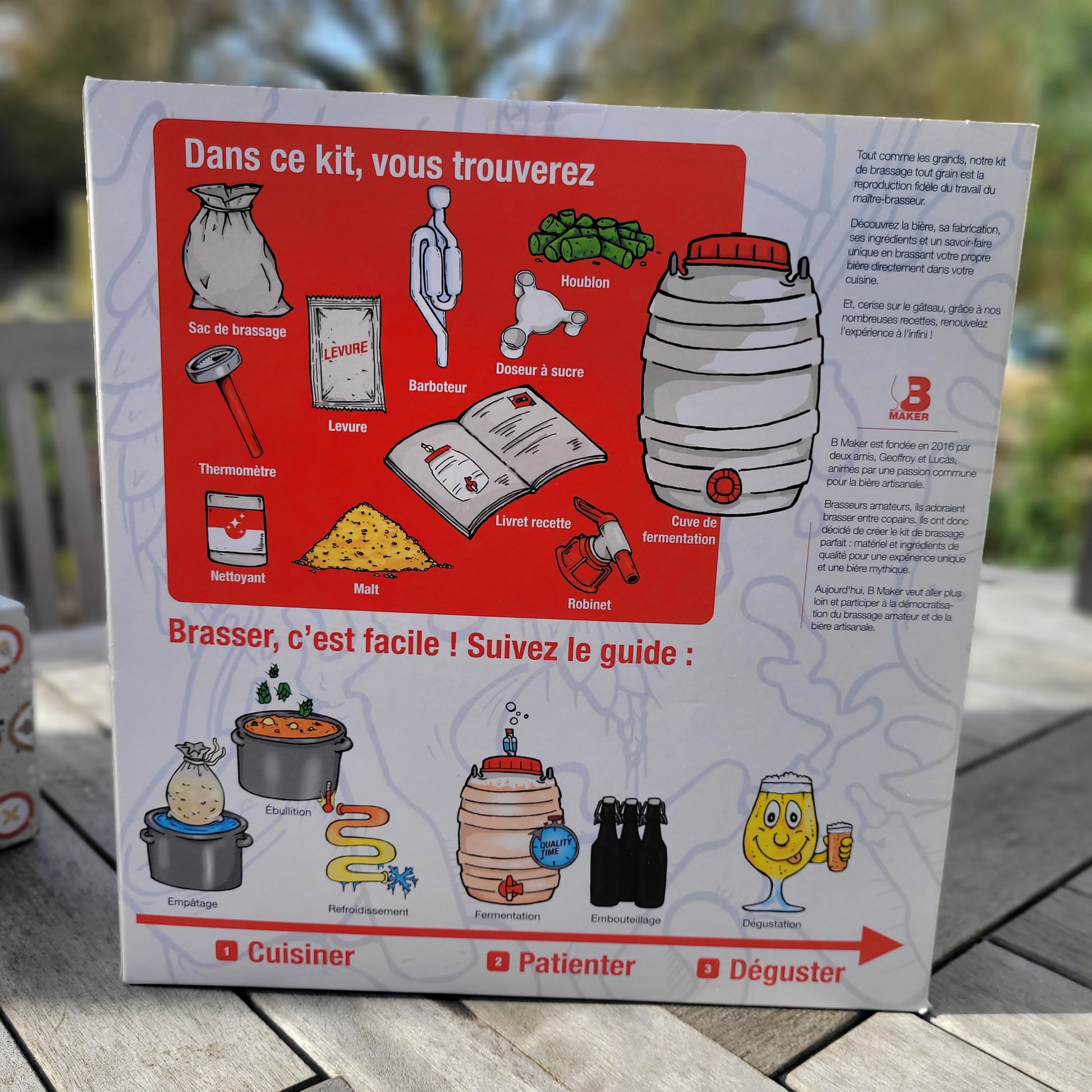 Une ddm à mai ou septembre 2025 pour ces kits de brassage 4L (mais qui ont toujours été conservés au frais). Tout le matériel est fourni, il faudra juste prévoir une grosse casserole et des bouteilles à bouchons mécaniques.
